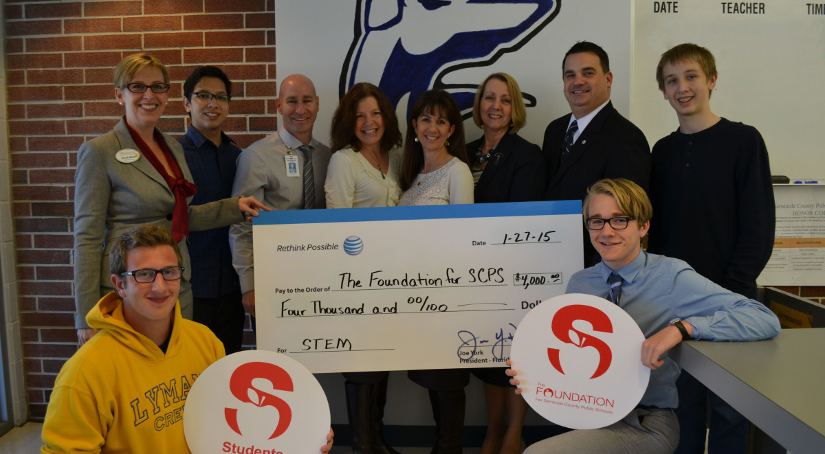 The Foundation for SCPS is pleased to announce a $4,000 AT&T grant to benefit AT&T STEM at Work projects at Lyman High School and Stenstrom Elementary School. “We know industries engaged in STEM disciplines will create a majority of high-value, high-wage jobs and within ten years, almost nine out of ten new jobs will require education beyond a high school degree,” said Joe York, AT&T Florida President. “We are pleased to make this contribution because Florida’s K-12 education foundations are well positioned to be the link between schools and local businesses for students, enabling them to build connections with potential employers in their communities, get a sense of what careers they offer and the skill sets they require.”