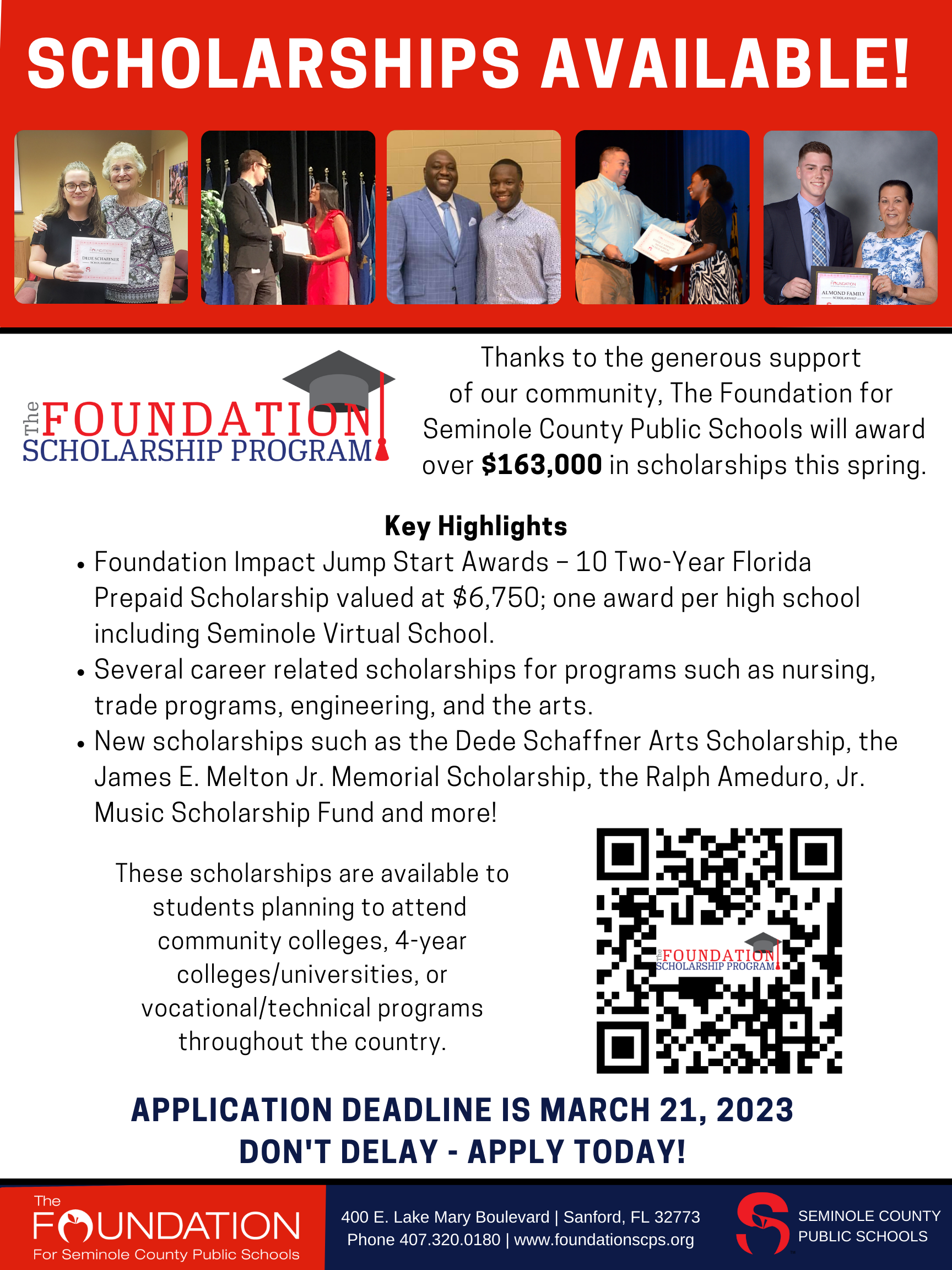 Please join our effort to promote these local scholarships and encourage SCPS seniors to apply.