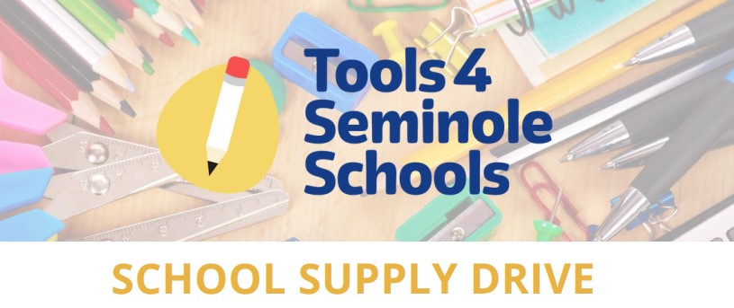 Our Tools 4 Seminole Schools’ Annual Supply Drive officially begins July 7th and runs through September 15th. Whether you want to host a summer team builder, buy online with our virtual supply drive, or wait until the clearance sales at local retailers in September, you’ll be providing essential school supplies to keep our shelves stocked all year long. To find out how you can support Tools 4 Seminole Schools and the students and teachers of Seminole County Public Schools, please check out our Drive Toolkit or call 407.320.7768.