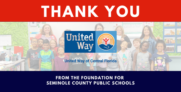The Foundation recently received a $40,000 grant from United Way of Central Florida. These funds will support a variety of Foundation programs align with our mission to improve student achievement in Seminole County Public Schools. These programs include our Take Stock in Children Program, Student Scholarships, our Tools 4 Seminole Schools teacher store and more!