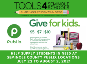 Starting July 22, you can help Seminole County Public Schools students in need get a head start through Tools 4 Seminole Schools and Publix.